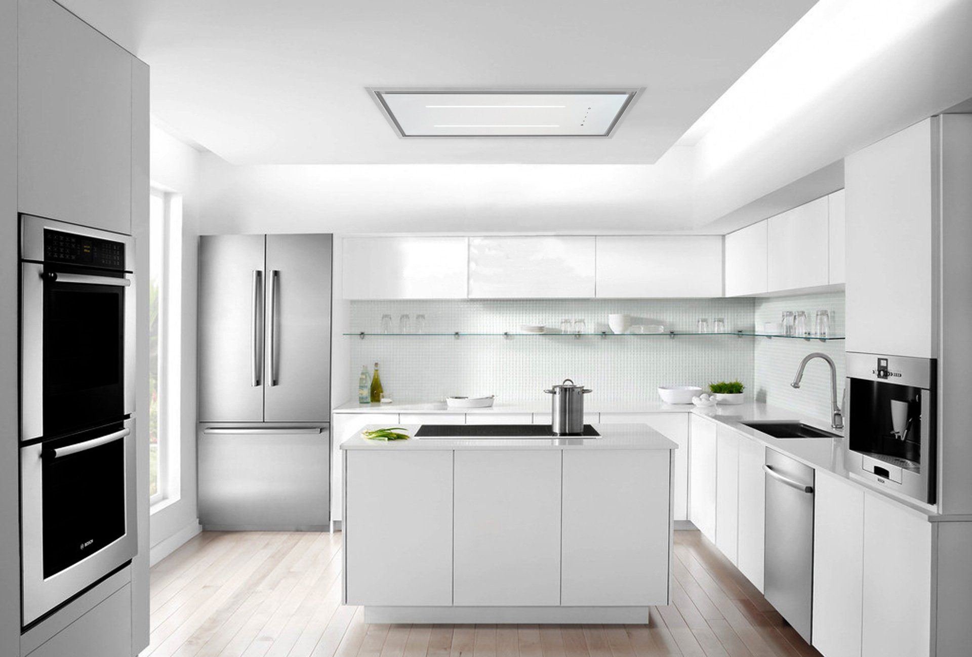 - Ceiling cassette and island hoods are often quieter when installed correctly, as they distribute airflow over a wider area.